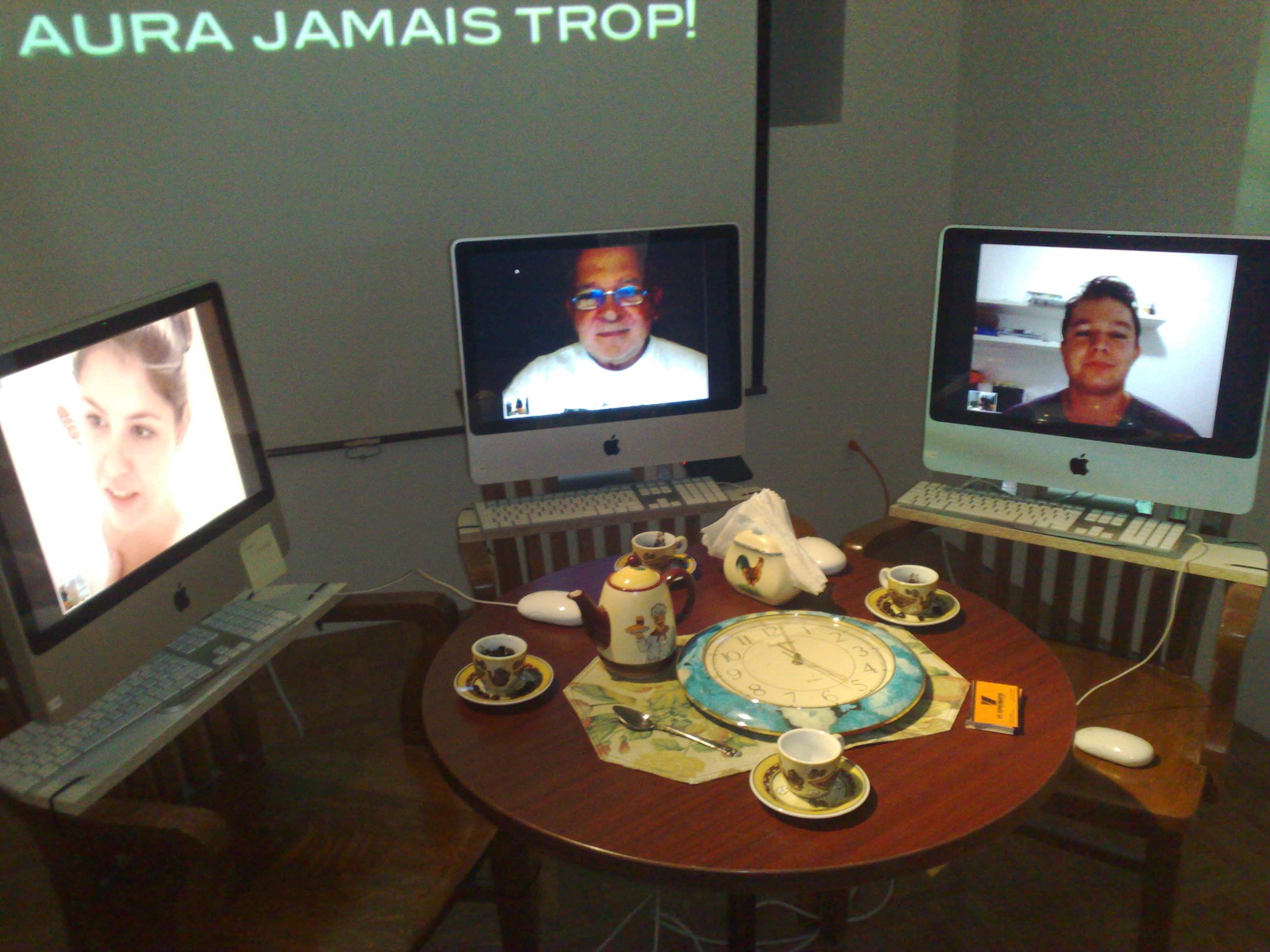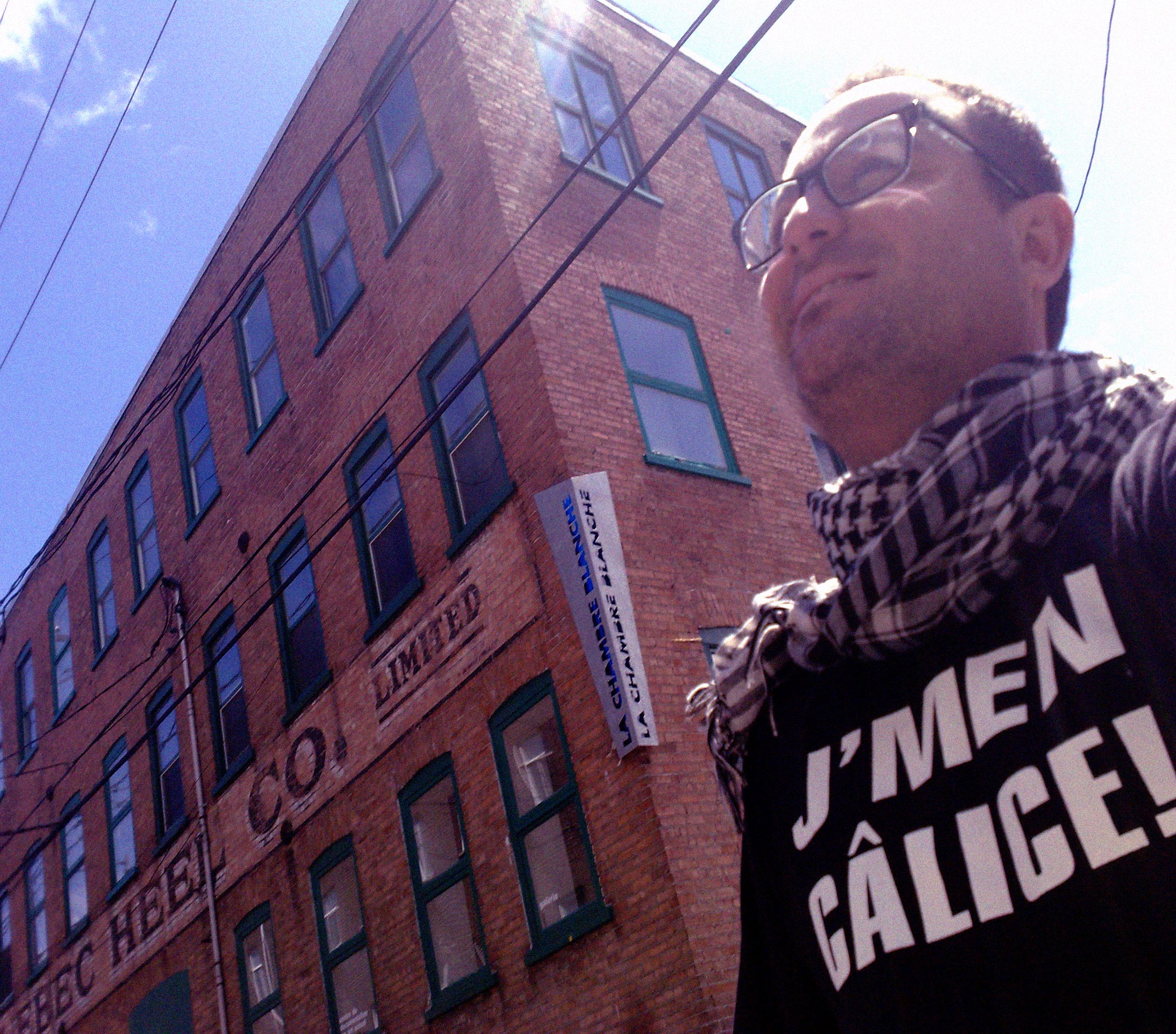 Começando a montagem do Bistrô virtual #microfugas na La Chambre Blanche. A versão do Québec tem novidades além das imagens externas que agora refletem a cidade da video instalação, na La Chambre Blanche o projeto ganhou dois projetores de vídeo com mensagens diferentes.