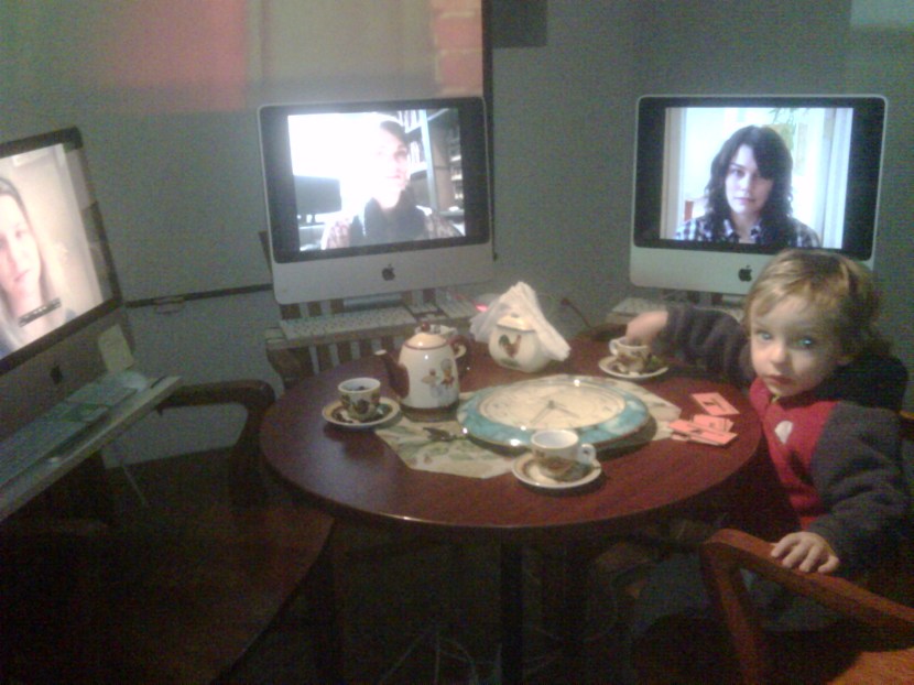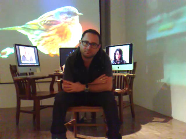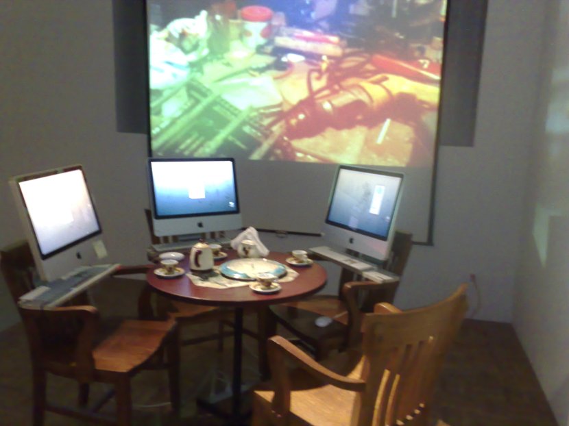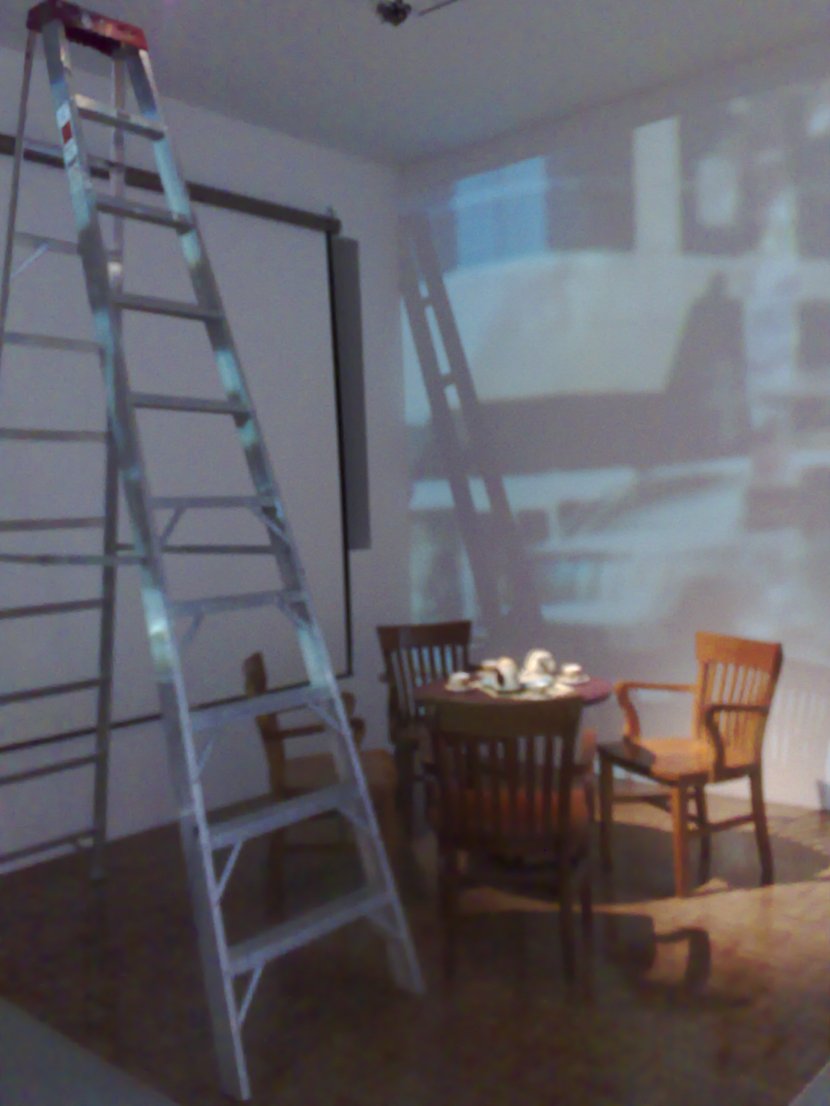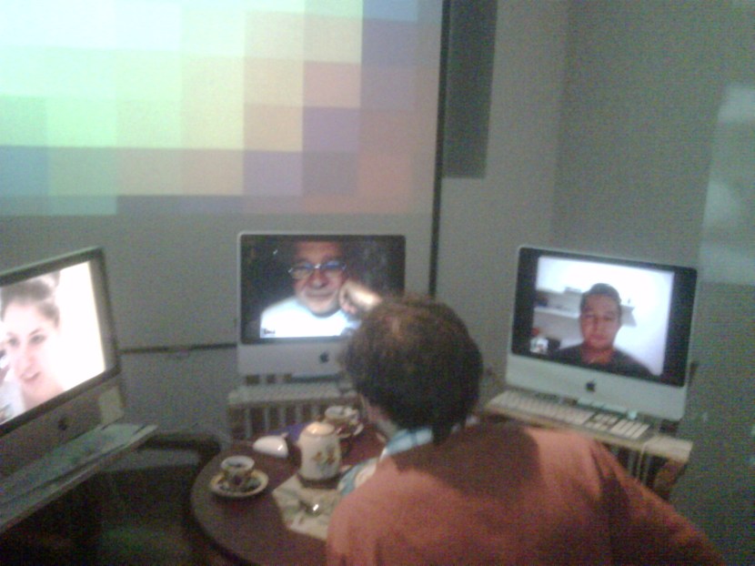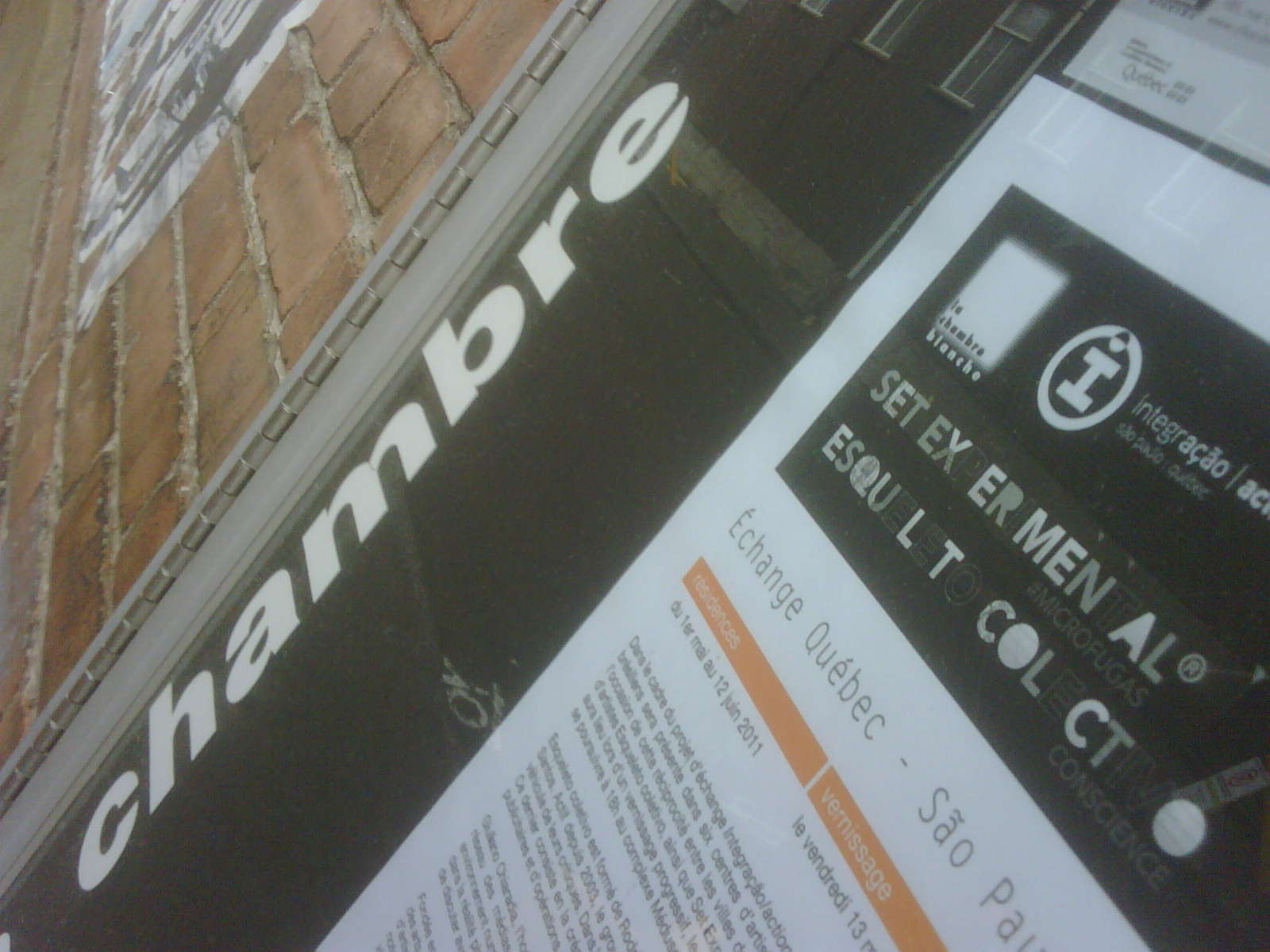 Starting to mount virtual Bistro #microfugas at La Chambre Blanche. The Quebec version of the news is beyond external images which now reflect the city’s video installation, La Chambre Blanche in the project has two video projectors with different messages.