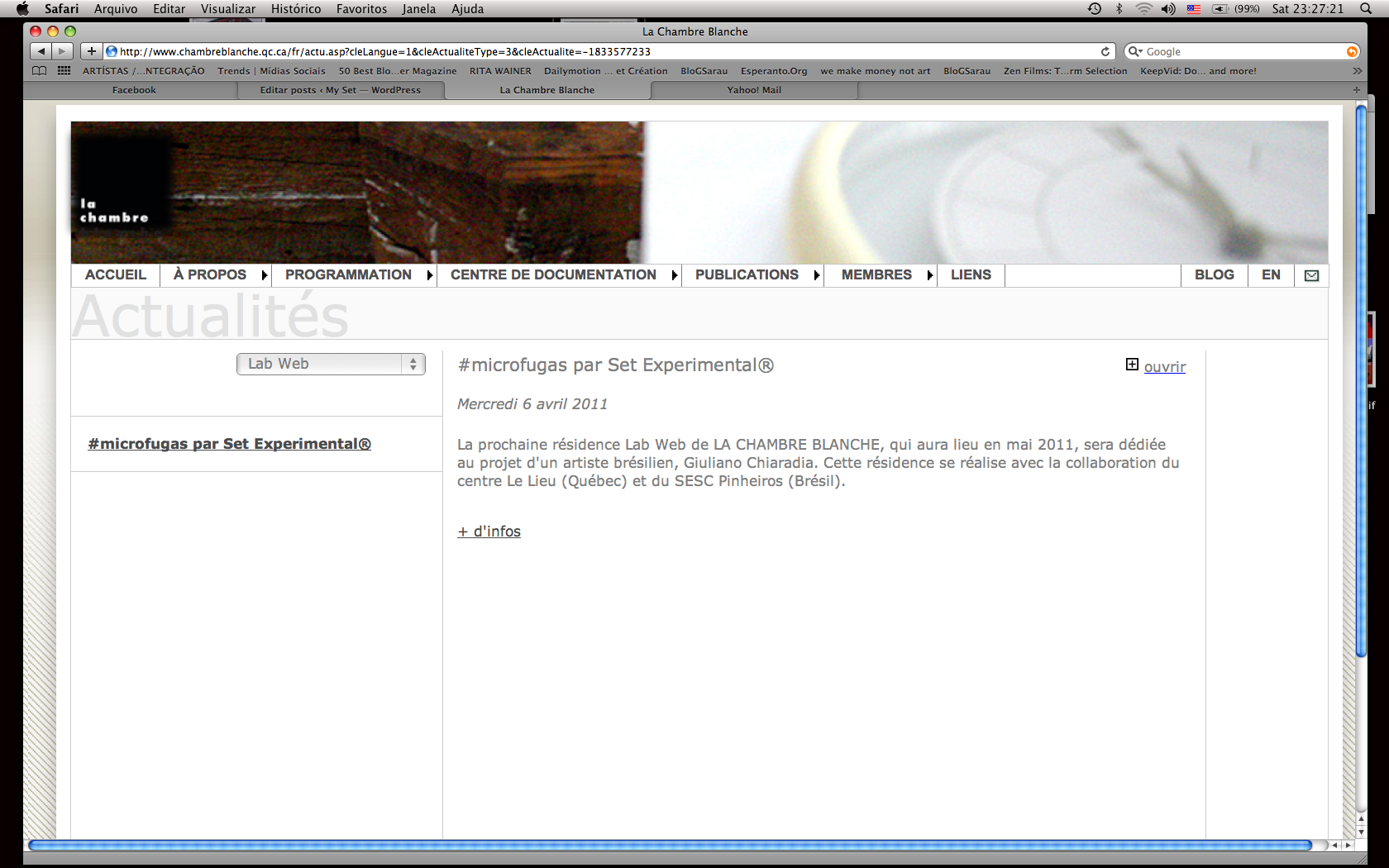 SET EXPERIMENTAL® ganha destaque no site da La Chambre Blanche: