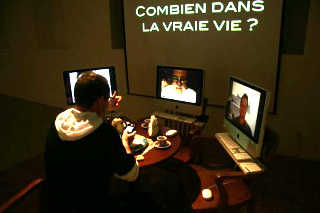 Each computer has a webcam, allowing the conversation between the three is seen by all. The three exposed surfers will have the opportunity to interact with each other and a fourth person, in this case will the visitor of the exhibition.