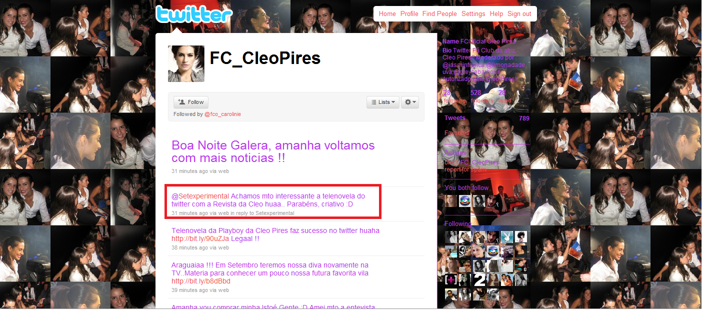A febre do Twitter também tomou conta do Festival. Cineastas, produtores e celebridades passaram a perguntar pela Cléo e a sugerir locais e situações em que ela poderia estar.